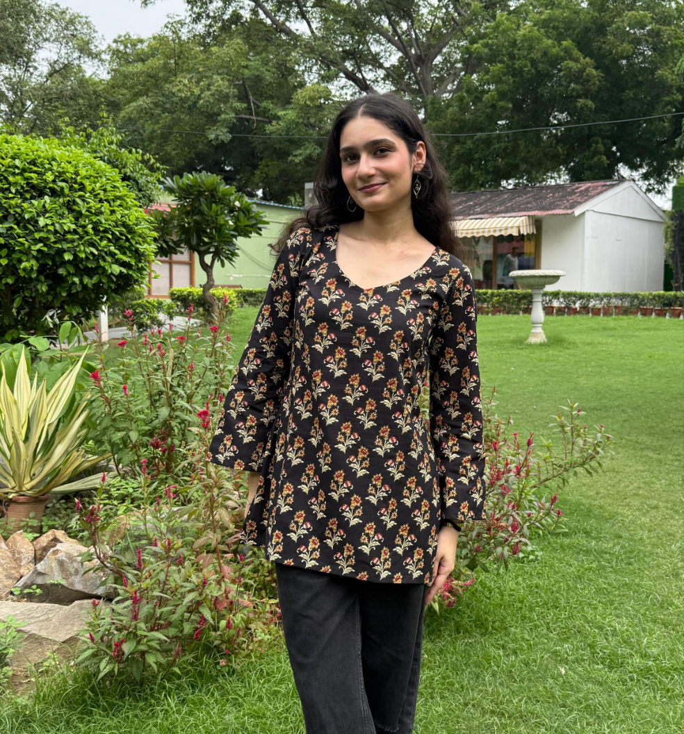 Say hello to everyday elegance with our Heer Bell sleeve Kurti, where timeless floral block...